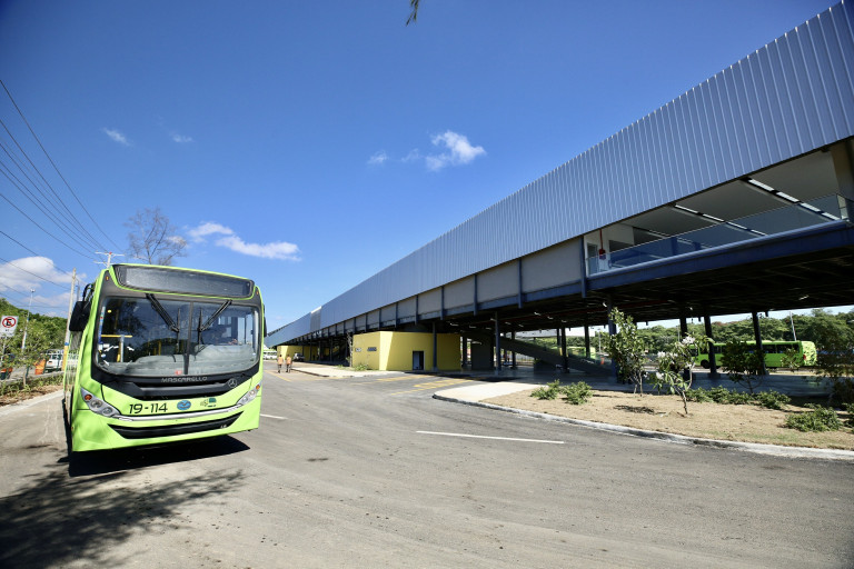 Vista exterior de la Terminal Interregional de Autobuses Santo Domingo Este, entregada hoy en acto encabezado por el presidente Danilo Medina.
