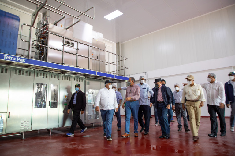 El presidente Danilo Medina recorrió las nuevas instalaciones junto al ministro Administrativo de la Presidencia, José Ramón Peralta; el ministro de Agricultura, Osmar Benítez, y ganaderos de la Pasteurizadora Ysura.