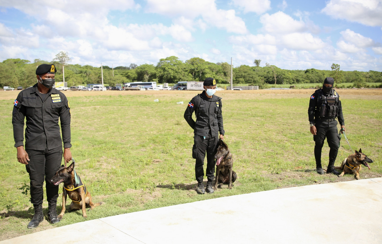 Personal militar del moderno complejo penitenciario La Nueva Victoria, ubicada en San Antonio de Guerra, inaugurada hoy por el presidente Danilo Medina.