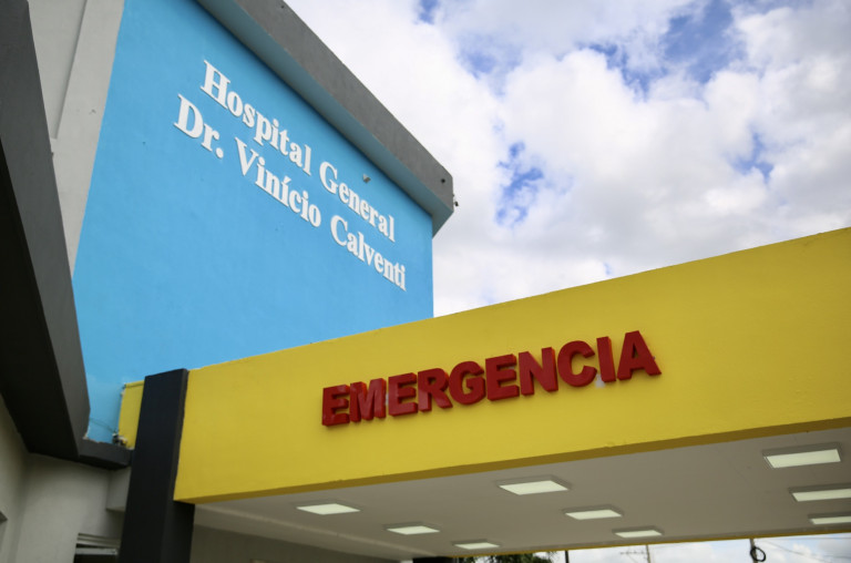Fachada frontal del Hospital General Dr. Vinicio Calventi, en Los Alcarrizos, entregado hoy por el presidente Danilo Medina completamente remozado y equipado.