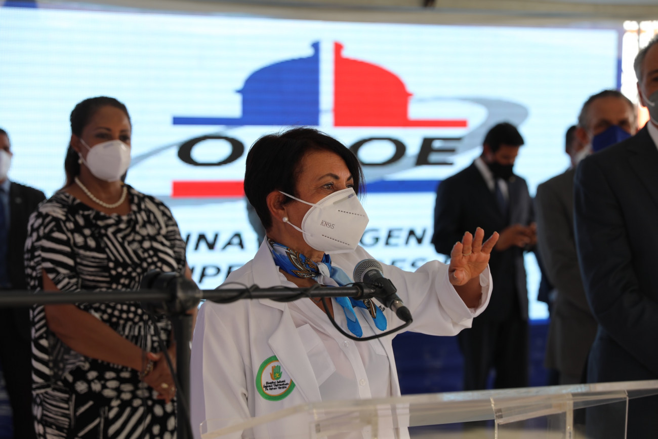 Directora del Hospital Infantil Arturo Grullón, Dra. Cruz María Santana, durante su discurso.