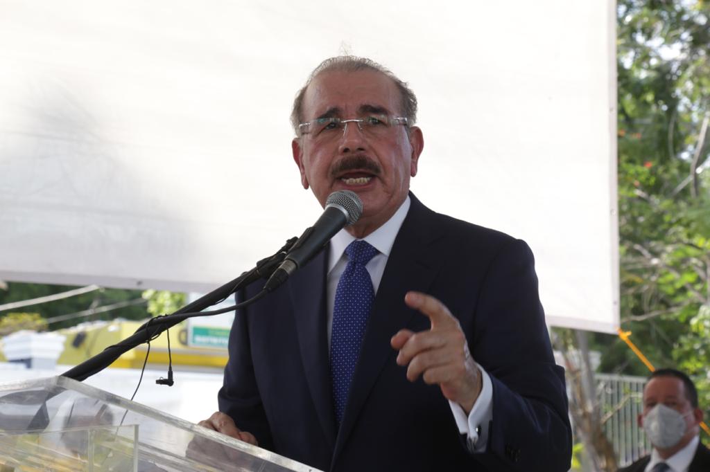 Presidente Danilo Medina durante su discurso en el acto de la entrega del Hospital Provincial San Bartolomé, una Escuela Vocacional de las Fuerzas Armadas y la Policía Nacional en Neiba y el Puesto de Chequeo Fuerza Tarea Conjunta e Interagencial Vicente Noble en Barahona.