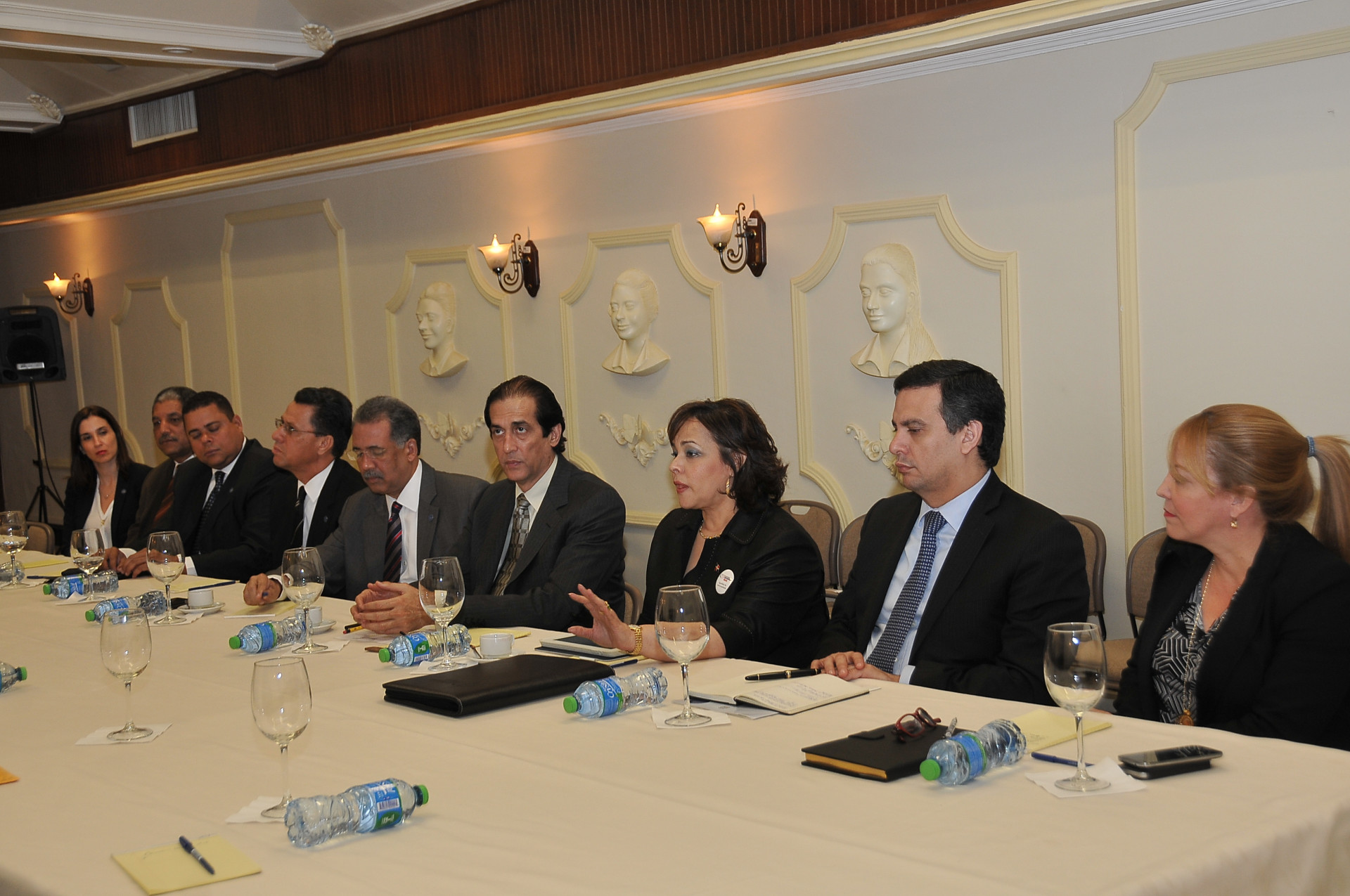 El ministro de la Presidencia, Gustavo Montalvo, durante reunión con integrantes de la Comisión de Veeduría del Ministerio de Haciendas, encargadas de acompañar y supervisar las compras y contrataciones de ese ministerio, efectuada en el Salón Hermanas Mirabal del Palacio Nacional.