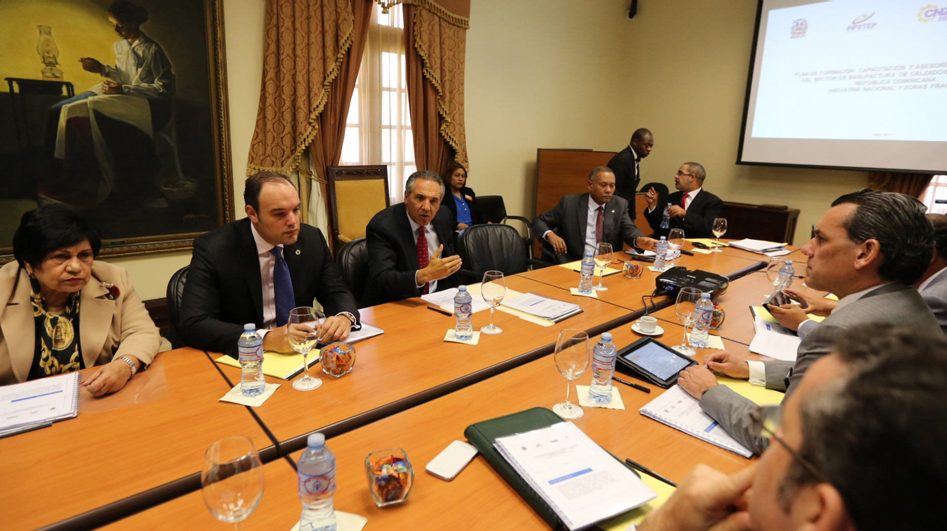 Además del ministro Peralta, durante el encuentro también estuvieron presentes los ministros, Ligia Amada Melo de Cardona, de Educación Superior, Ciencia y Tecnología; José del Castillo Saviñón, de Industria y Comercio; Luisa Fernández, directora ejecutiva del Consejo Nacional de Zonas Francas de Exportación; Idionis Pérez, director del INFOTEP, Aquiles Bermúdez, presidente de la Asociación Dominicana de Zonas Francas y los empresarios de zonas francas José Clase, José Manuel Torres, Mícalo Bermúdez, Miguel Lama y Luis José Bonilla.
