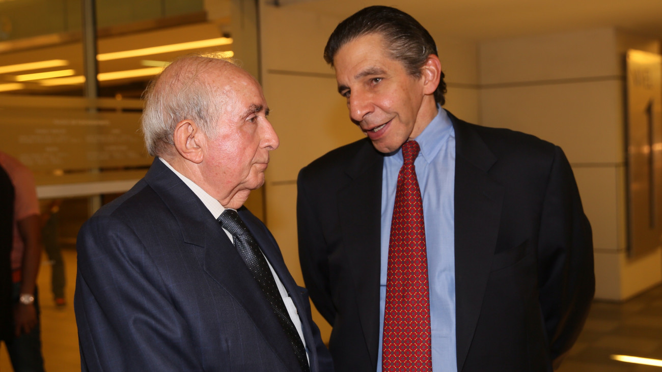 A la izquierda, José Manuel González y Miguel Barletta, mientras conversan durante recepción inaugural de la tienda FOREVER 21.
