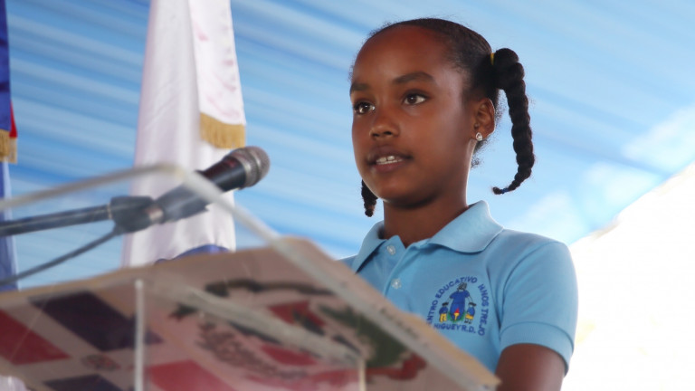 En representación de los estudiantes, la alumna Estrella Ávila Calderón, de octavo grado, agradeció a Dios por darle salud al presidente Medina y la nobleza de entregarse a los más pobres, permitiéndoles disfrutar de un plantel educativo para la Jornada de Tanda Extendida, con equipos modernos para facilitarles el aprendizaje.
