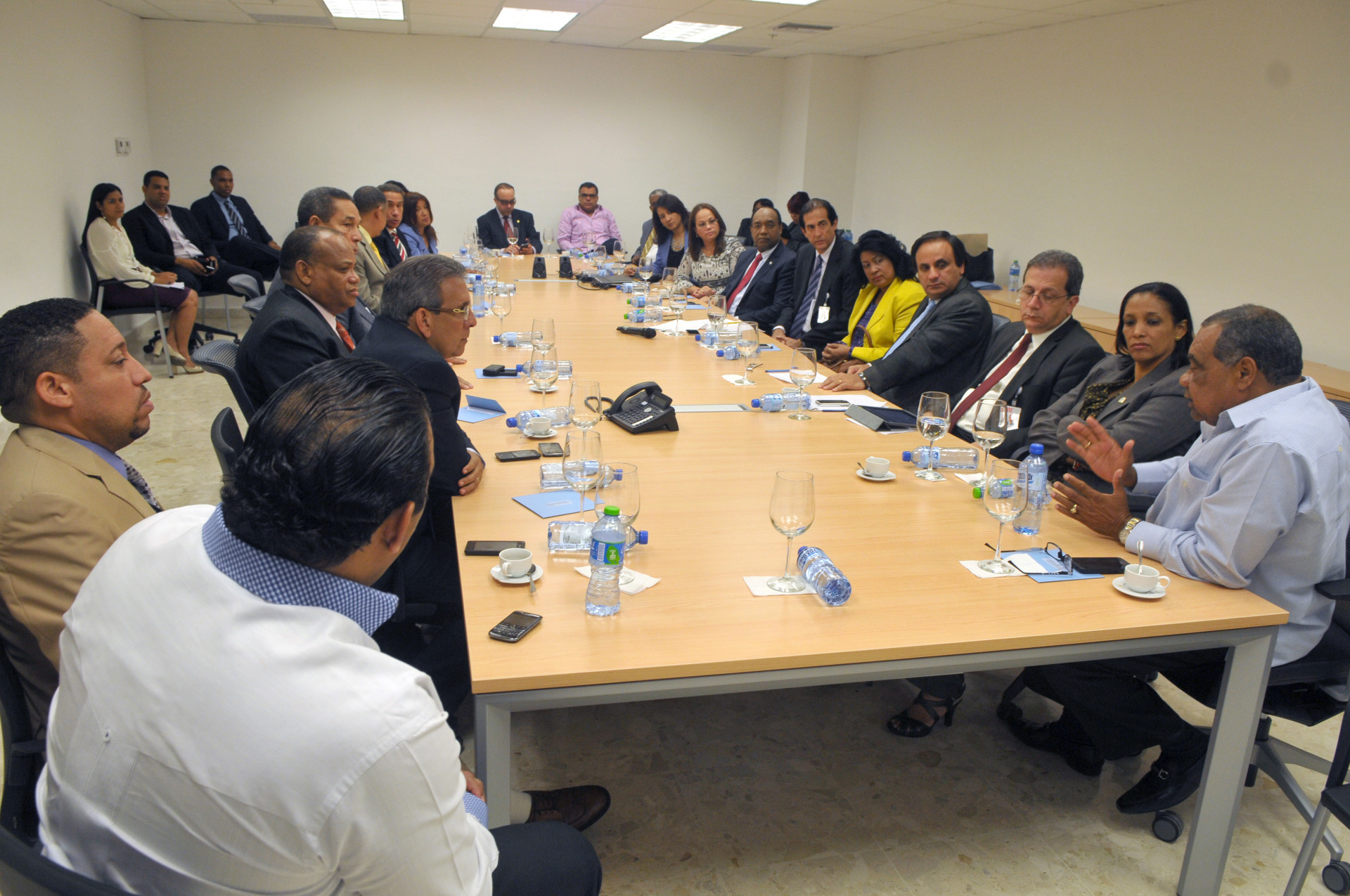 Encuentro encabezado por el ministro de la Presidencia, Gustavo Montalvo, junto a la comisión de senadores y diputados de la República, efectuado en la sede del Sistema Nacional de Atención a Emergencias y Seguridad 9-1-1, para conocer sus instalaciones y servicios.