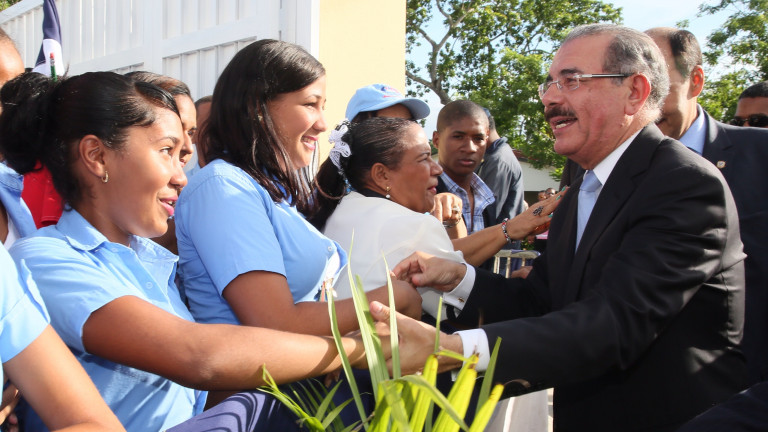 El presidente Danilo Medina saluda con afectos y alegría los estudiantes.